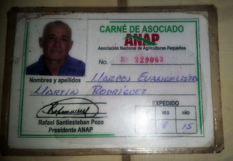 Desde el año 80 trabajo la tierra en la finca La Teresita situada en la carretera Camajuaní, luego en el 2009 se me entregó 1.68 cordeles por la 259, donde me asocie a la CCS El Vaquerito (cooperativa de crédito y servicio). Durante casi 20 años he venido entregando al gobierno un aproximado de 5 quintales de lo que cosechaba.